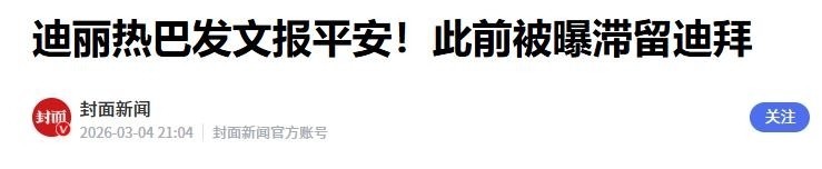 1.封面新闻-《迪丽热巴发文报平安!此前被曝滞留迪拜》-2026-03-04